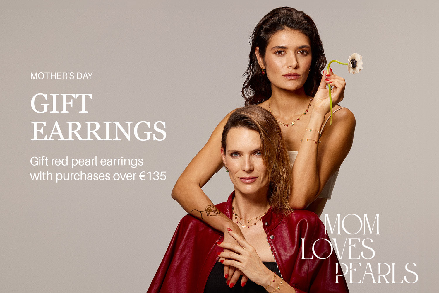 Red pearls and hearts in 18k gold-plated silver, a perfect gift for Mother's Day. A jewel that symbolizes the unbreakable bond that unites you.