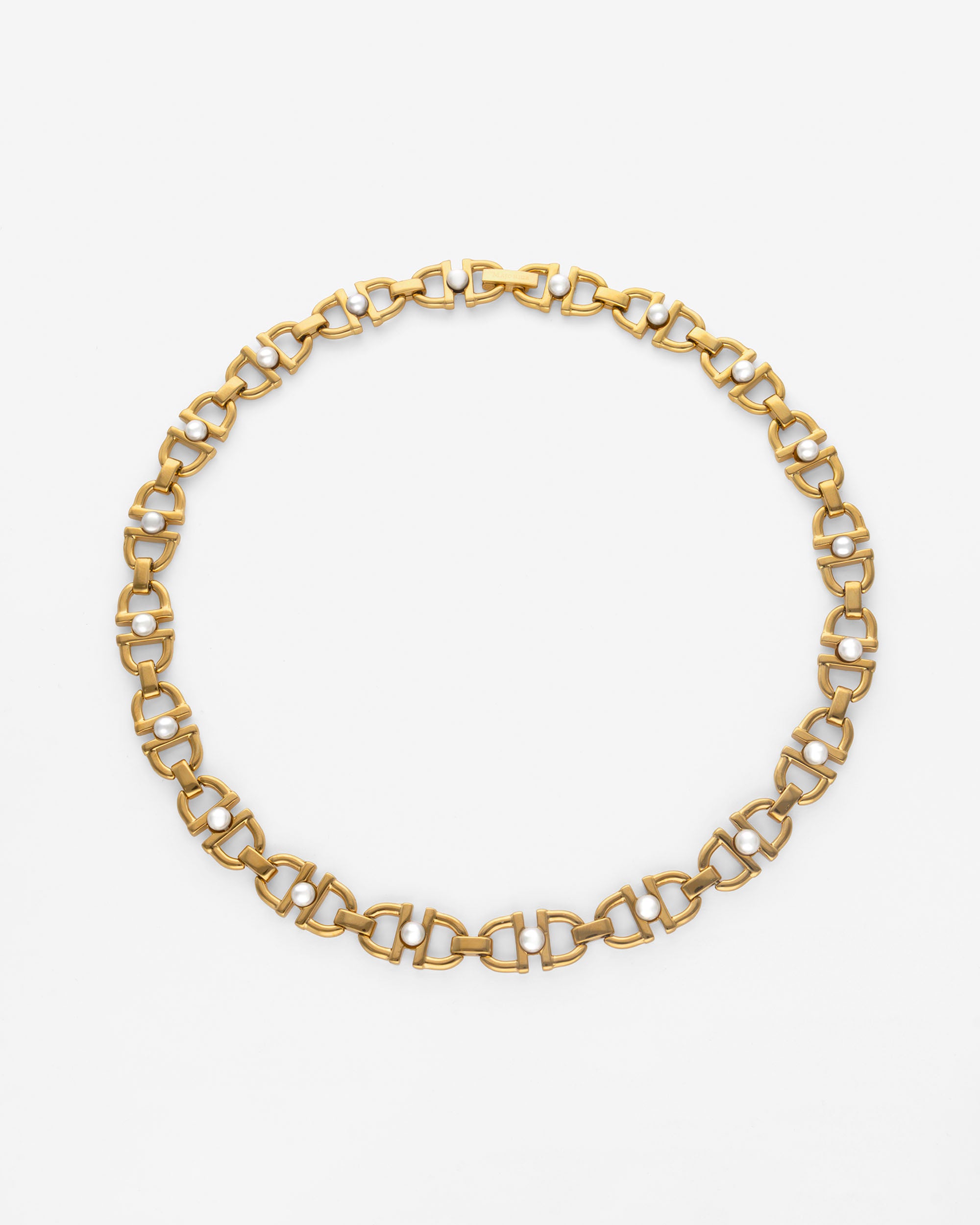 Inspirada en la observación del mundo ecuestre y de sus códigos, esta cápsula parte de estribos, bocados y herrajes elementos diseñados para sostener, guiar y acompañar el movimiento.El acero y la perla dialogan con sutileza; el cuero y el cordón aportan tensión y carácter. Cada pieza encarna equilibrio, proporción y fuerza contenida, reflejando el gesto que define movimiento y presencia.