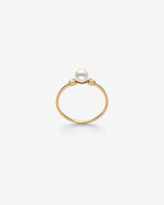 Anillo Oro 18K, Diamantes y Perla Blanca Gold