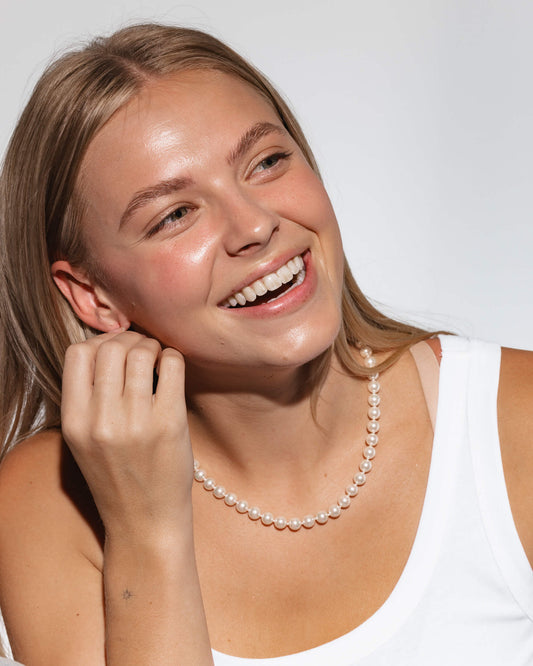 El collar de perlas es una joya clásica que añade un toque distintivo a cualquier look. Nuestra colección de collares combina a la perfección con looks estilo coquette o incluso con un look más minimalista con jeans y camisa.