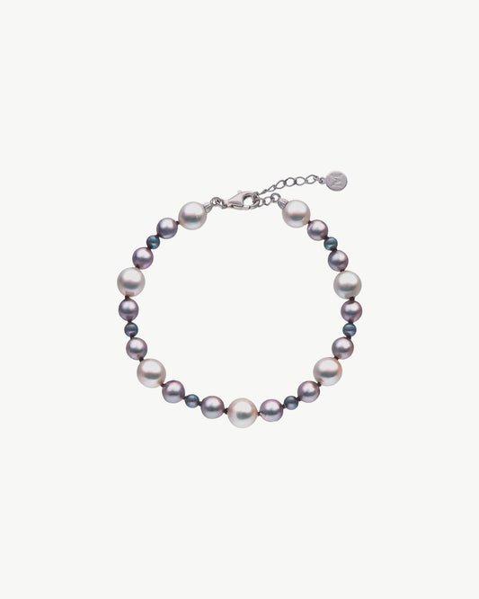 Con el mismo diseño de perlas combinadas, encontrarás también una bonita pulsera en plata, perfecta para hacer match con alguno de los collares de la misma colección. Y, si lo prefieres, podrás convertirla a ella sola en la protagonista en tu joyero.