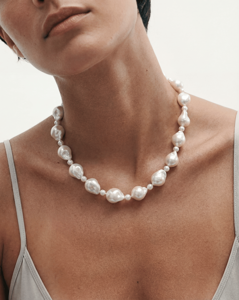 Collar de Cadena con Perla Oval Puffy Pearls