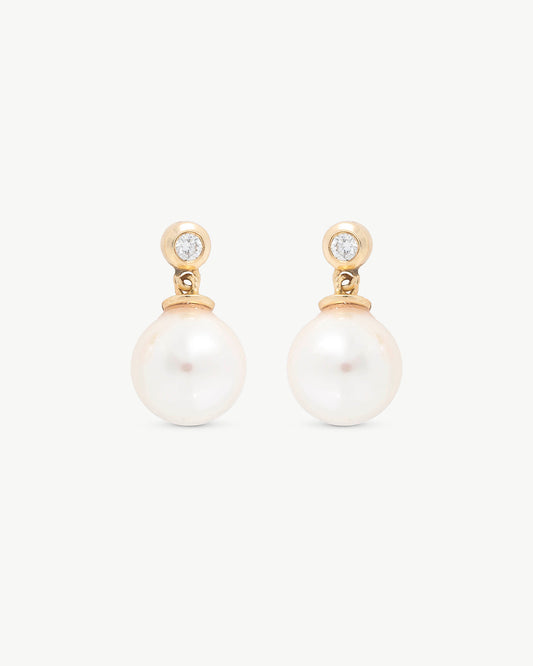 8mm Perlen- und 2mm Diamantohrringe in 18 Karat Gold