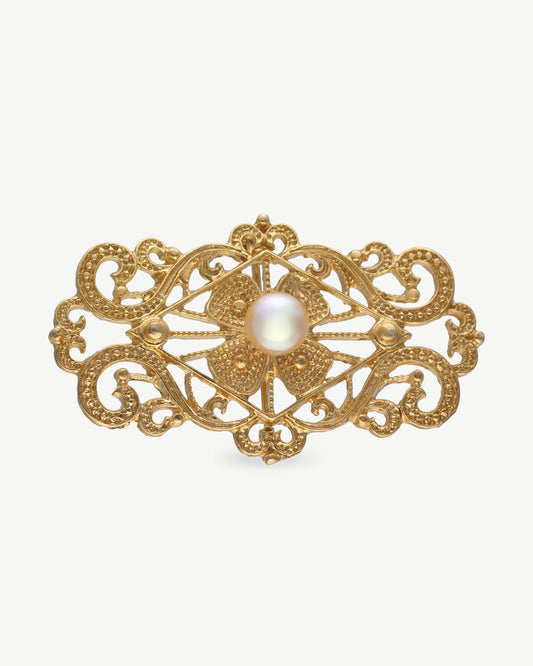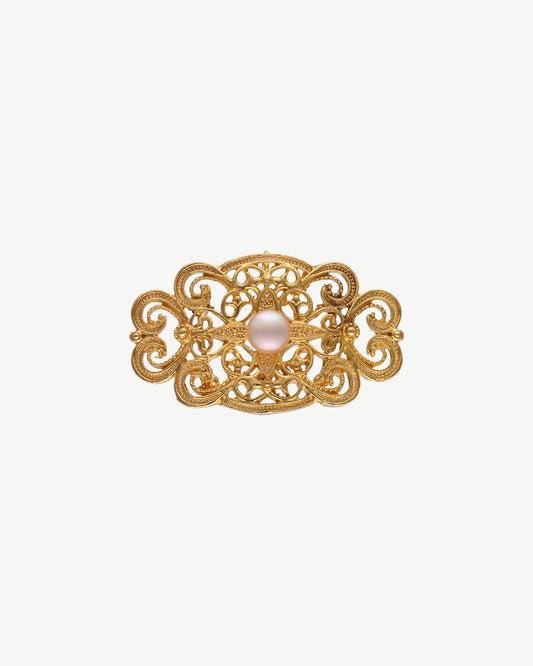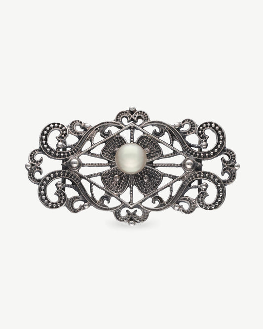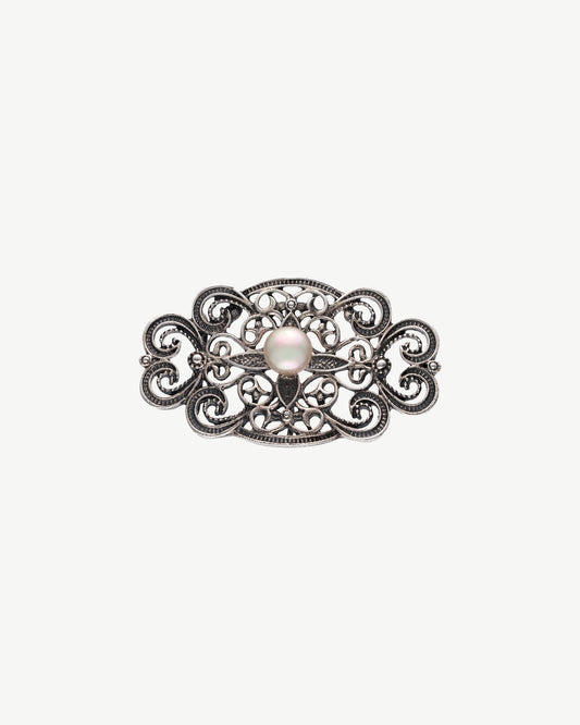 Retro-Broschen aus Silber und Perlen, die wie Halsbänder um den Hals passen