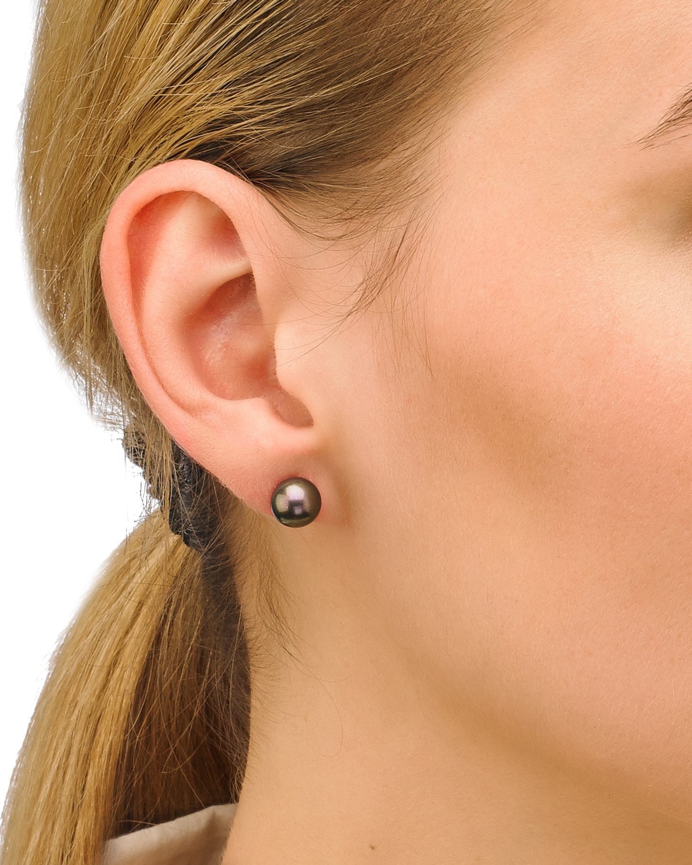 Silberne Kugelohrringe mit Stiftverschluss, verziert mit einer runden 8-mm-Tahitiperle.