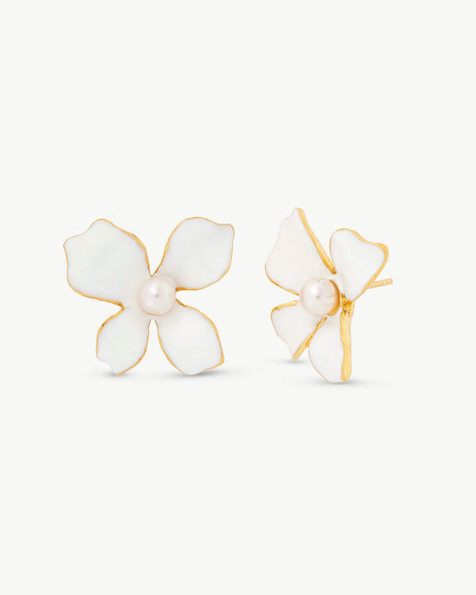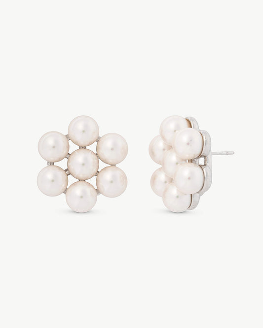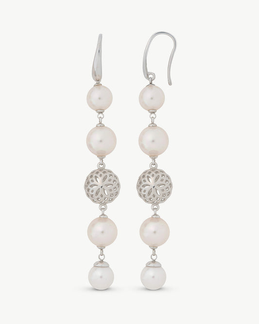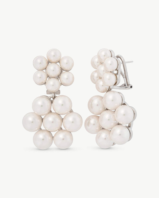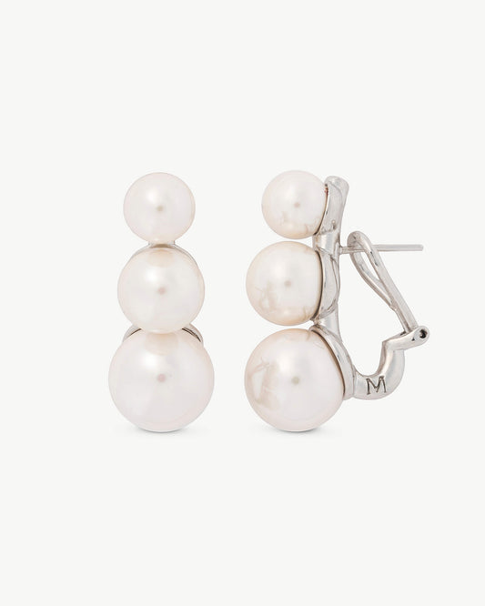 Dreifache weiße Perlenohrringe Twins & Triplets