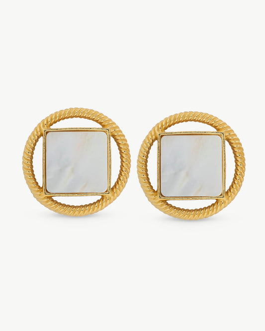 Quadratische Perlmutt-Knopf-Ohrringe Nacar