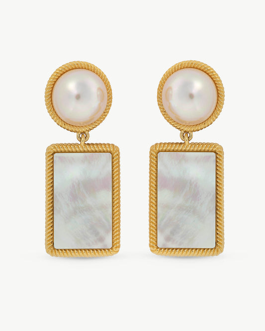 Lange rechteckige Perlmutt-Ohrringe Nacar