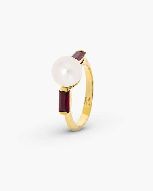 8 mm Perlen- und rubinroter Zirkoniaring in Gold Selene