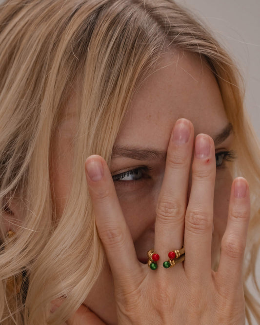 Doppelter grüner und roter Perlenring Twins & Triplets