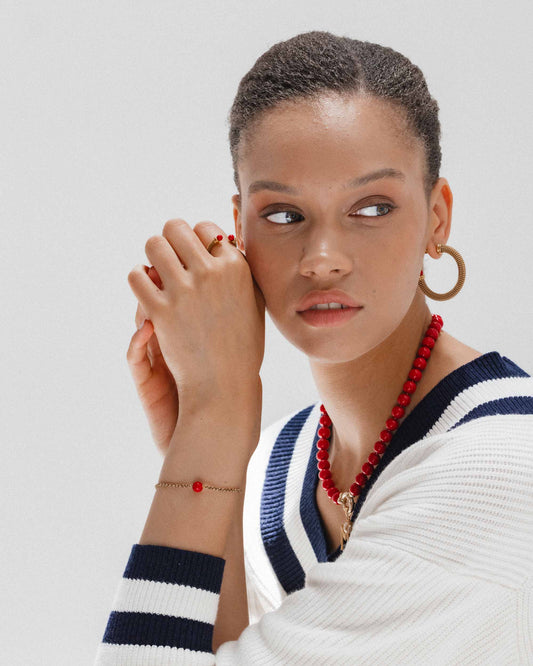 Doppelter Ring aus Nuage und roten Perlen Twins & Triplets