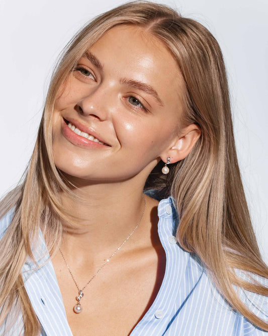 Blatt-Halskette und Ohrringe-Set mit 8–10 mm Perle und Zirkonia Selene