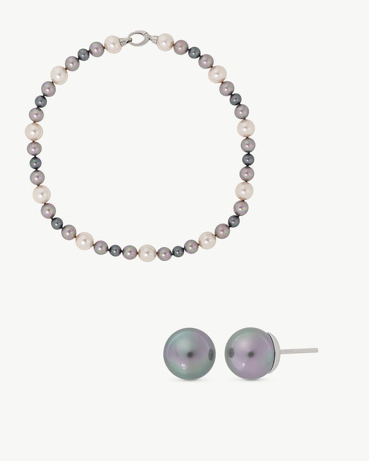 Set mehrfarbige Estela-Halskette und 8 mm graue Lyra-Perlenohrringe