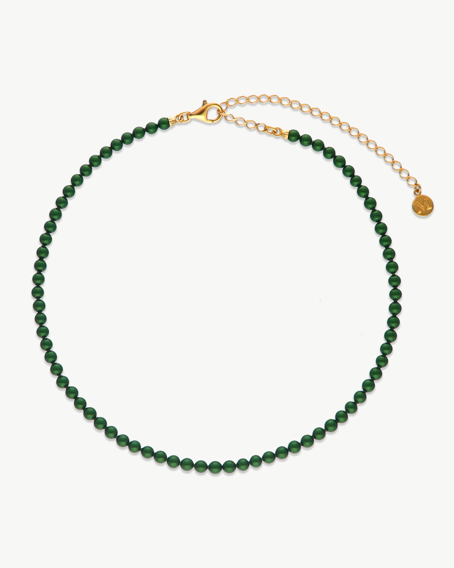 32/40 cm Perlenkette aus 18 Karat 18 Karat vergoldetes Silber, 4 mm grüne runde Perlen. Die zeitlose Kollektion einsträngiger Perlenketten