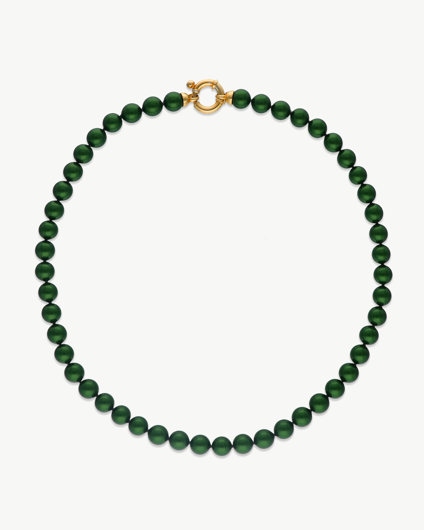 8-mm-Perlenkette aus 18 Karat vergoldetes Silber mit grünen Perlen und einer Länge von 45 cm. Die zeitlose Kollektion einsträngiger Perlenketten
