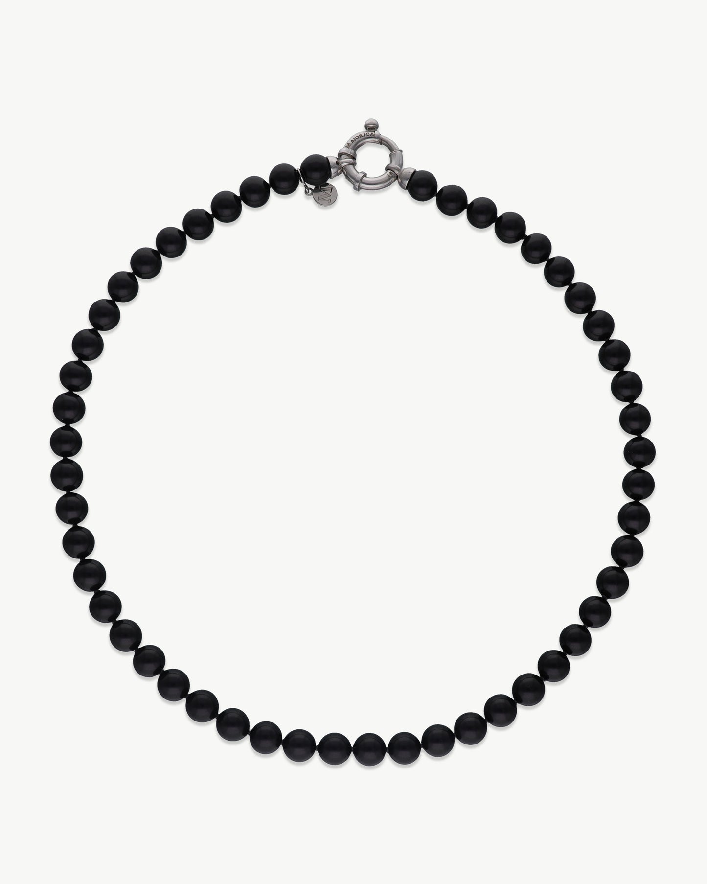 8 mm Perlenkette aus rhodiniertem Silber mit schwarzen Perlen und Länge 45 cm. Die zeitlose Kollektion einsträngiger Perlenketten