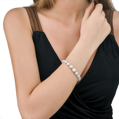 19/22 cm Armband aus rhodiniertem Silber, 6/7/8/9/10 mm weiße runde Perlen. Wenn Sie auf der Suche nach einer Auswahl an Basic-Schmuckstücken für Ihr Schmuckkästchen sind: Diese Ohrringe aus der Kollektion sind ein „Muss“, das sich zu allen Looks und Momenten kombinieren lässt.