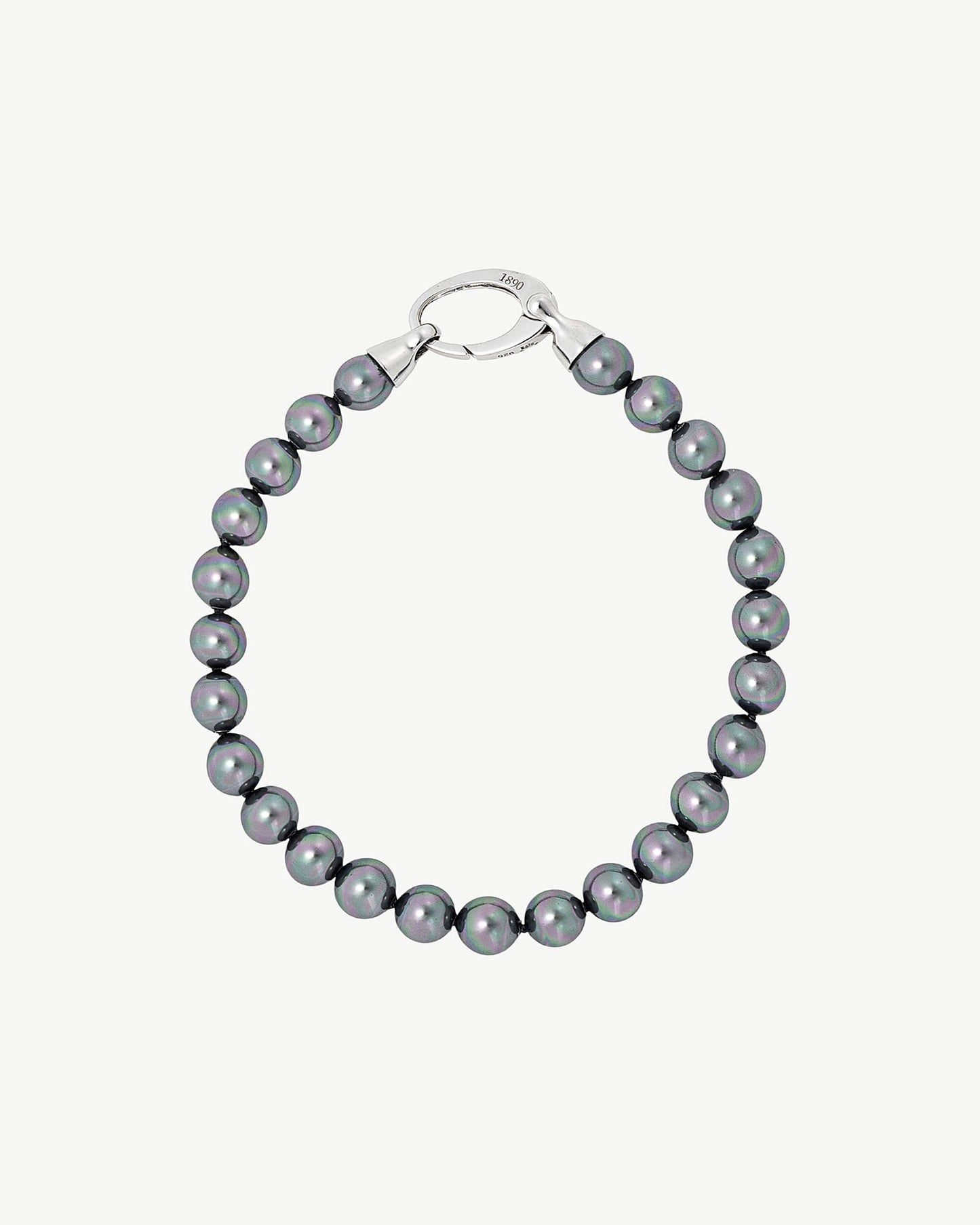 19 cm langes Armband aus rhodiniertem Silber, 6 mm große graue runde Perlen. Wenn Sie auf der Suche nach einer Auswahl an Basic-Schmuckstücken für Ihr Schmuckkästchen sind: Diese Ohrringe aus der Kollektion sind ein „Muss“, das sich zu allen Looks und Momenten kombinieren lässt.