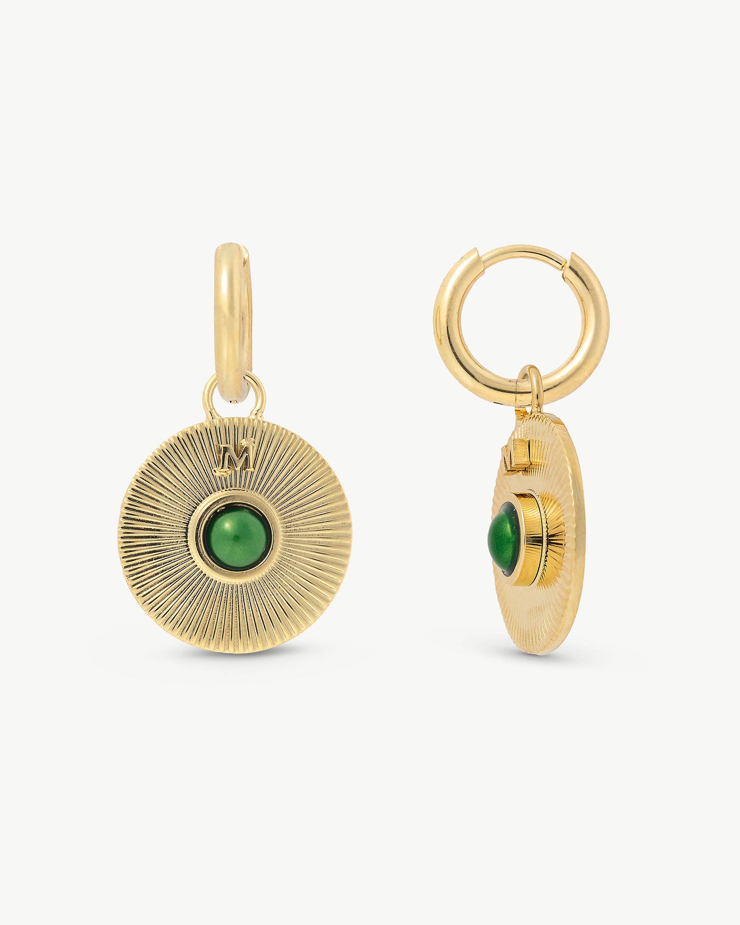 Creolen aus vergoldetem Stahl mit einer 4 mm großen grünen Halbperle.