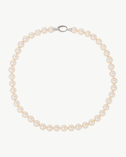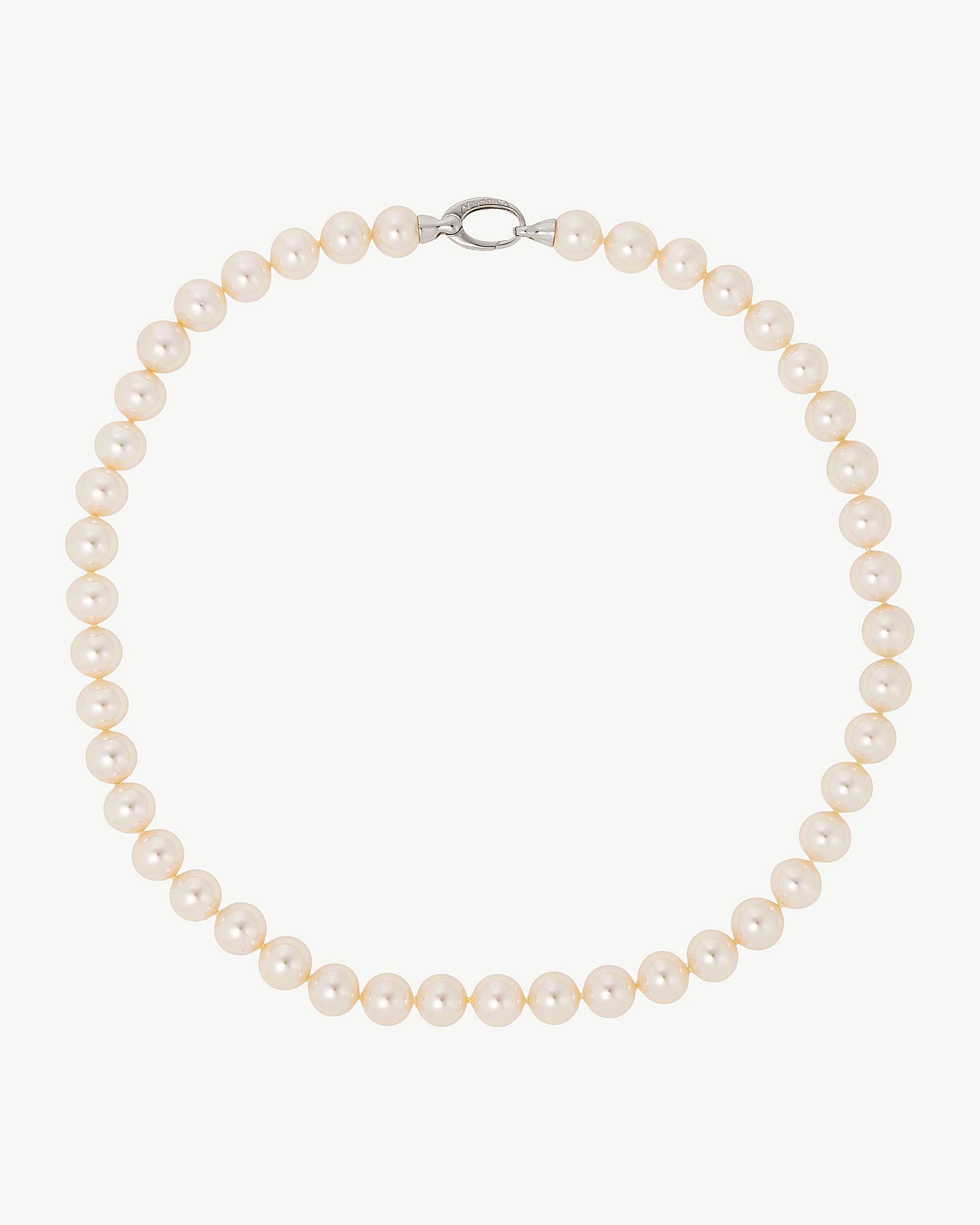 Kurze 45-cm-Halskette aus rhodiniertem Silber, 10-mm-weiße runde Perlen. Wenn Sie auf der Suche nach einer Auswahl an Basic-Schmuckstücken für Ihr Schmuckkästchen sind: Diese Ohrringe aus der Kollektion sind ein „Muss“, das sich zu allen Looks und Momenten kombinieren lässt.