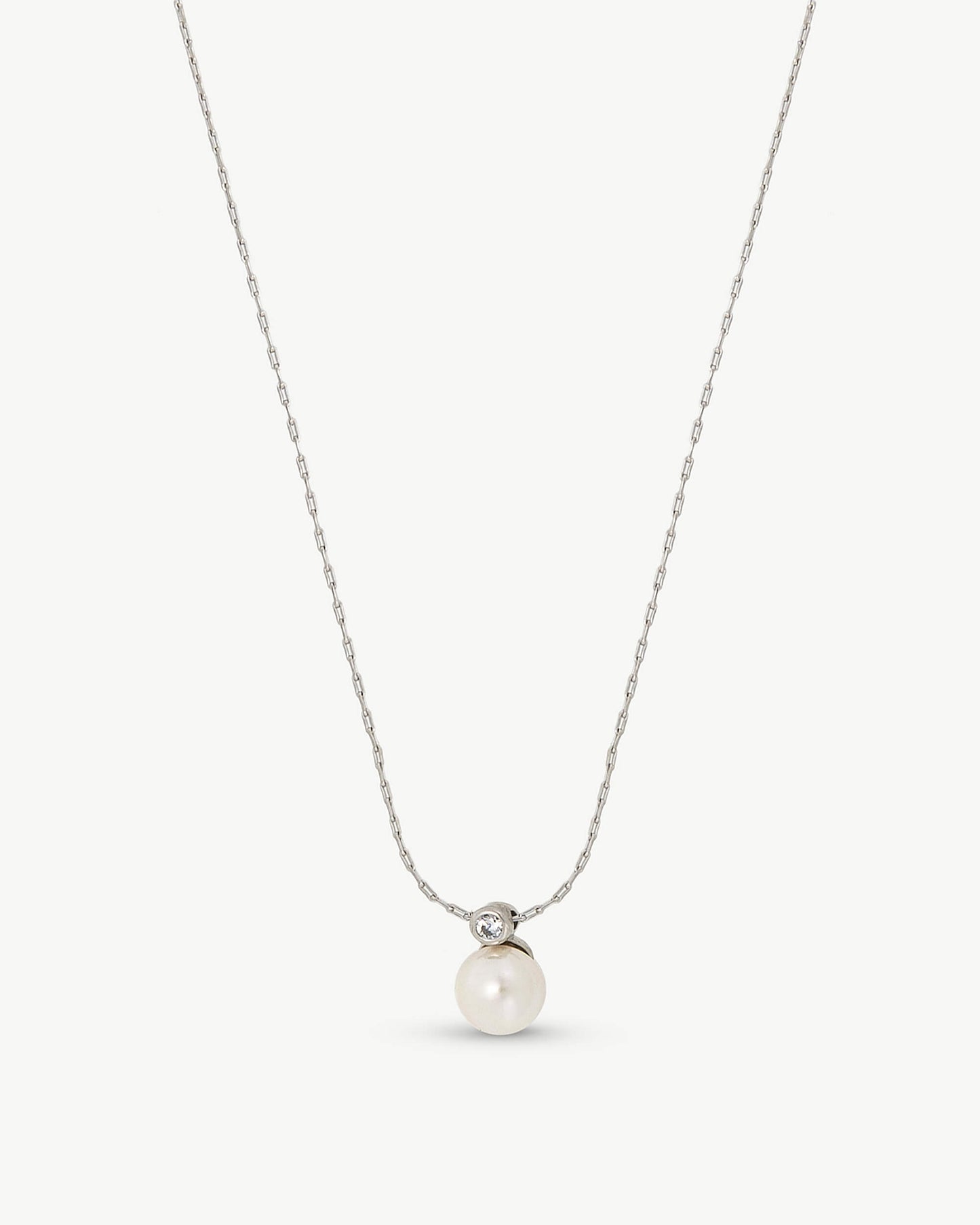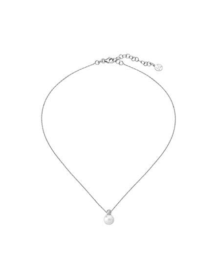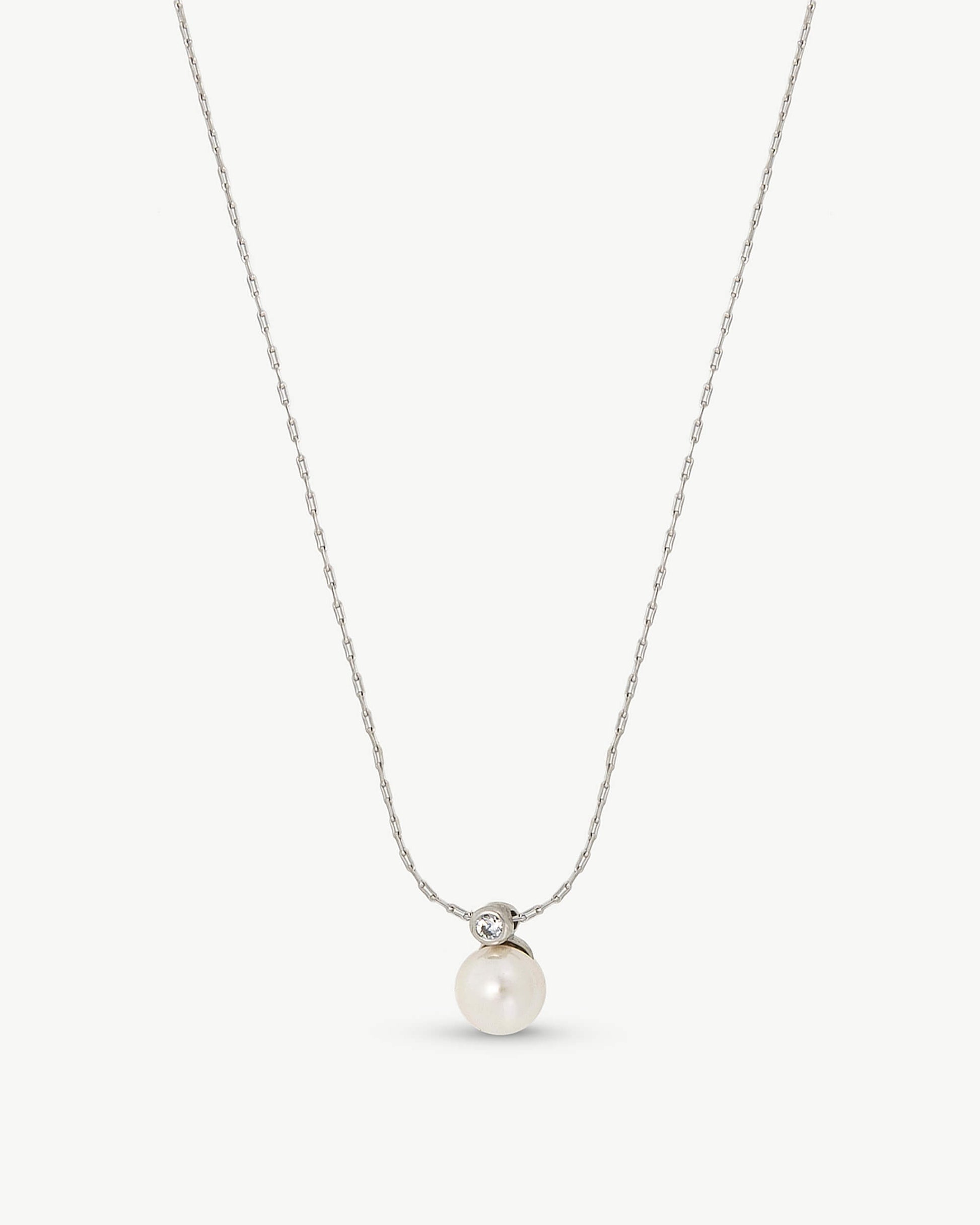 Anhänger mit 37/42 cm langer Kette aus rhodiniertem Silber, 6 mm runder Perle und weißem Zirkon. Isla de, diese galizische Insel, ist die Inspiration für den Namen dieser Schmuckkollektion, die sich durch schlichtes Design und Zeitlosigkeit auszeichnet.