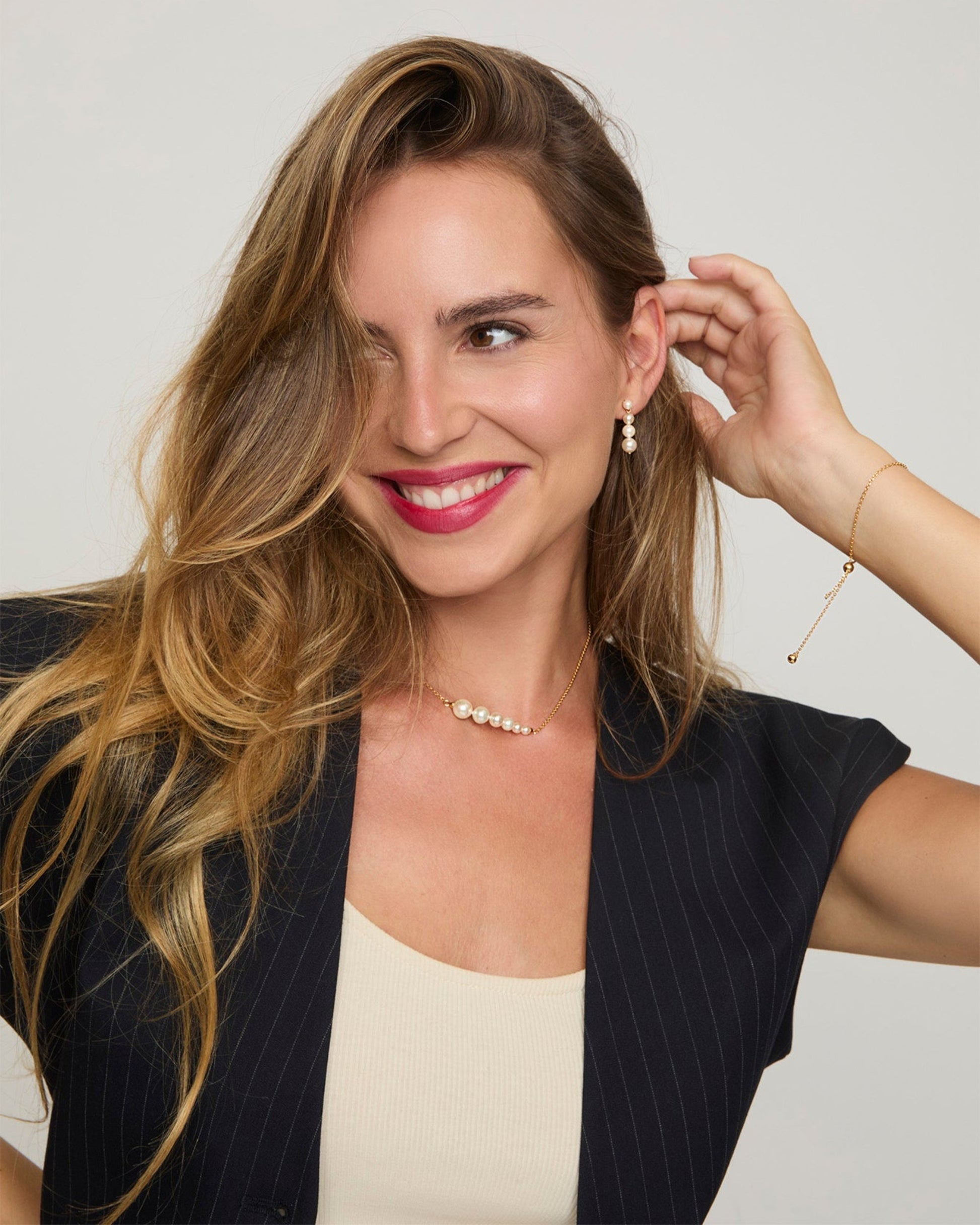 Der Trick besteht darin, mit den Proportionen zu spielen. Durch die Kombination mehrerer unterschiedlich langer Perlenketten im minimalistischen Look entsteht ein moderner und eleganter Look zugleich.