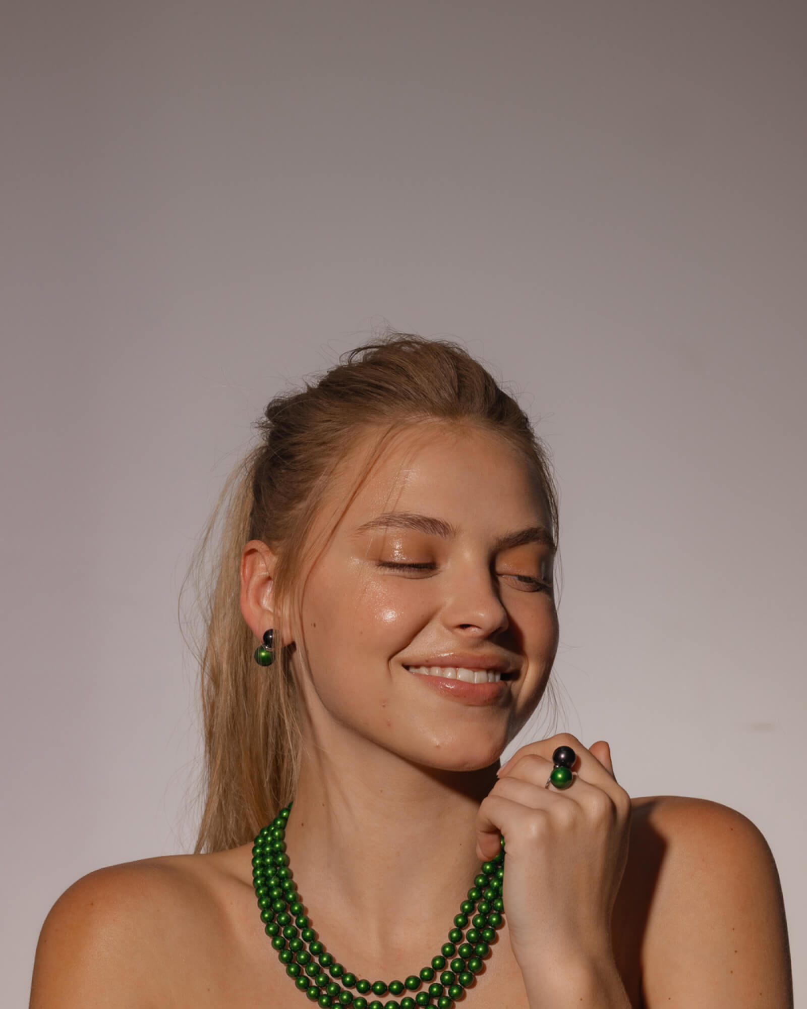 Der Trick besteht darin, mit den Proportionen zu spielen. Durch die Kombination mehrerer unterschiedlich langer Perlenketten im minimalistischen Look entsteht ein moderner und eleganter Look zugleich.