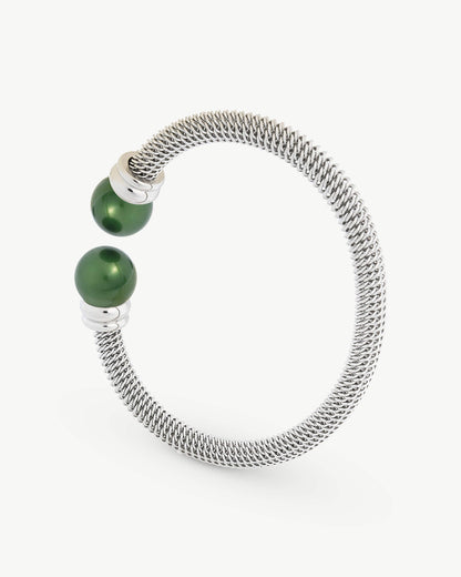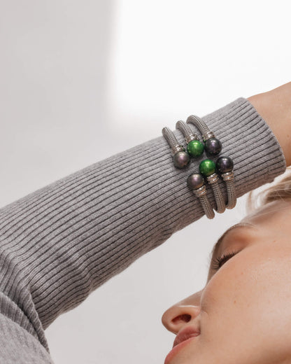 For this collection of bracelets, rings and earrings, made of high-quality steel and adorned with pearls, each piece has been created to combine the sobriety of steel with the timelessness of pearls.