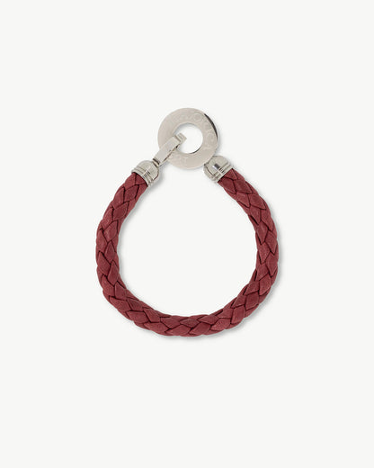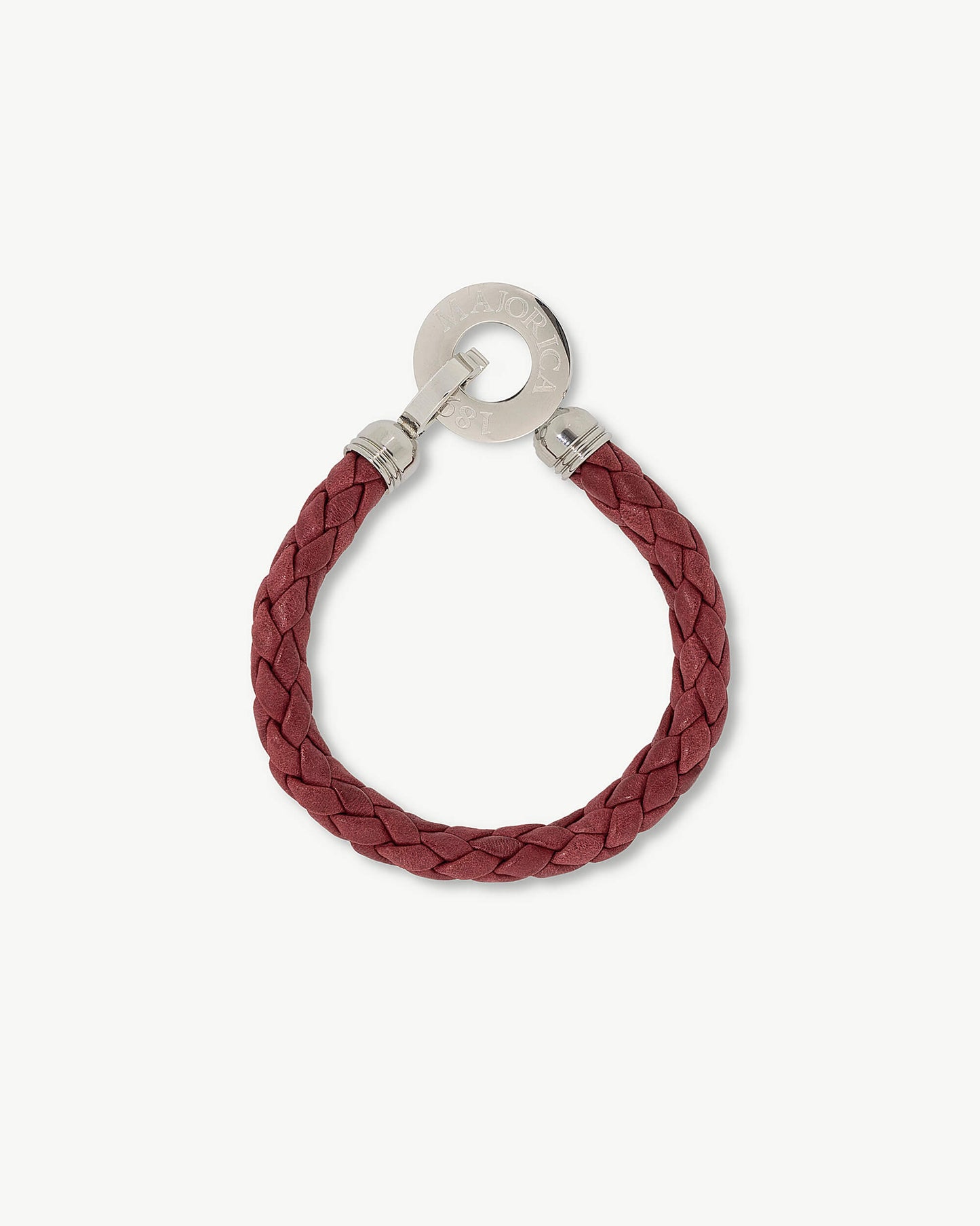 Golden steel and scarlet braided leather bracelet. Length 19cm. Casual, high-quality pieces for the most eclectic.