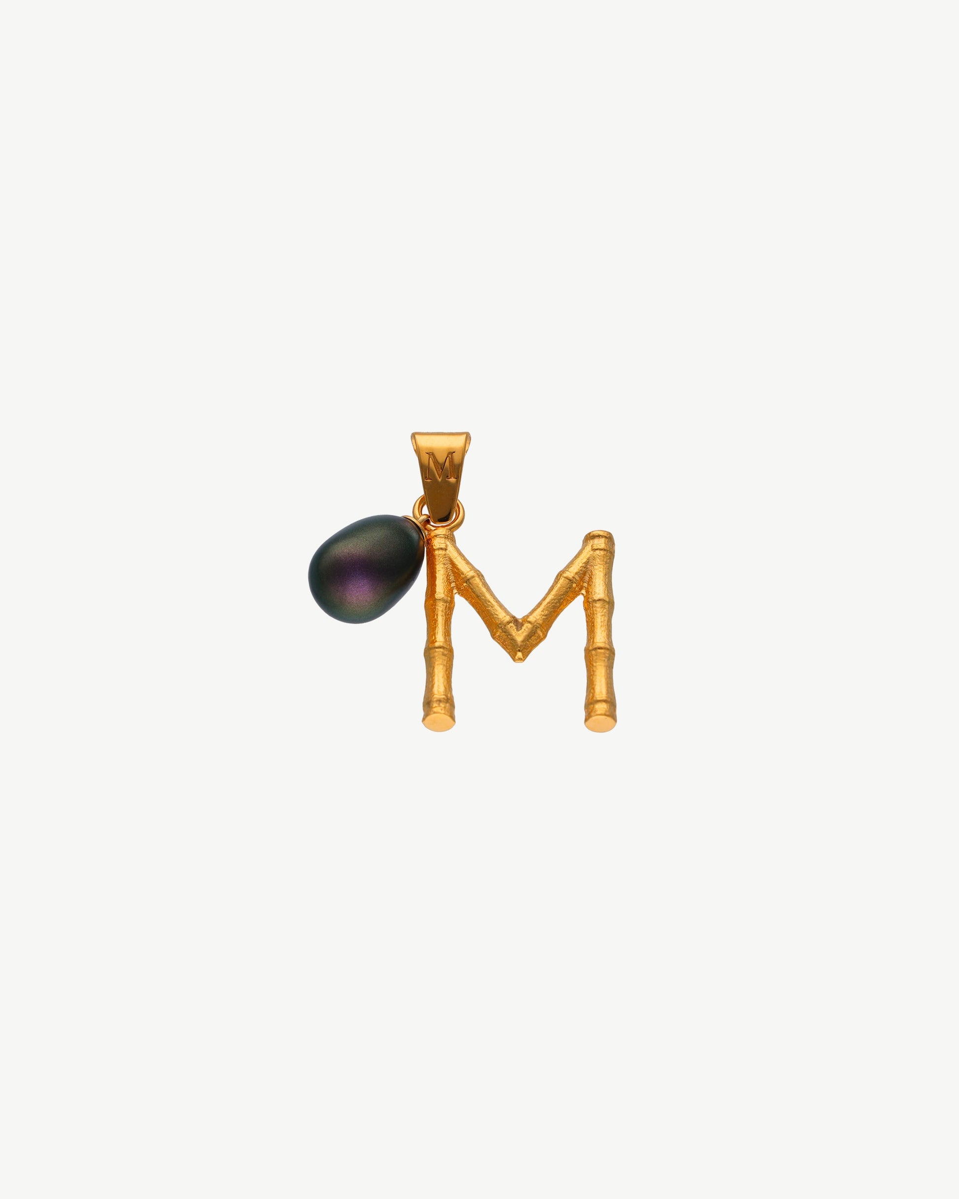 Initial Charm Letter M Pearl Tahitian Iniciales Bambu