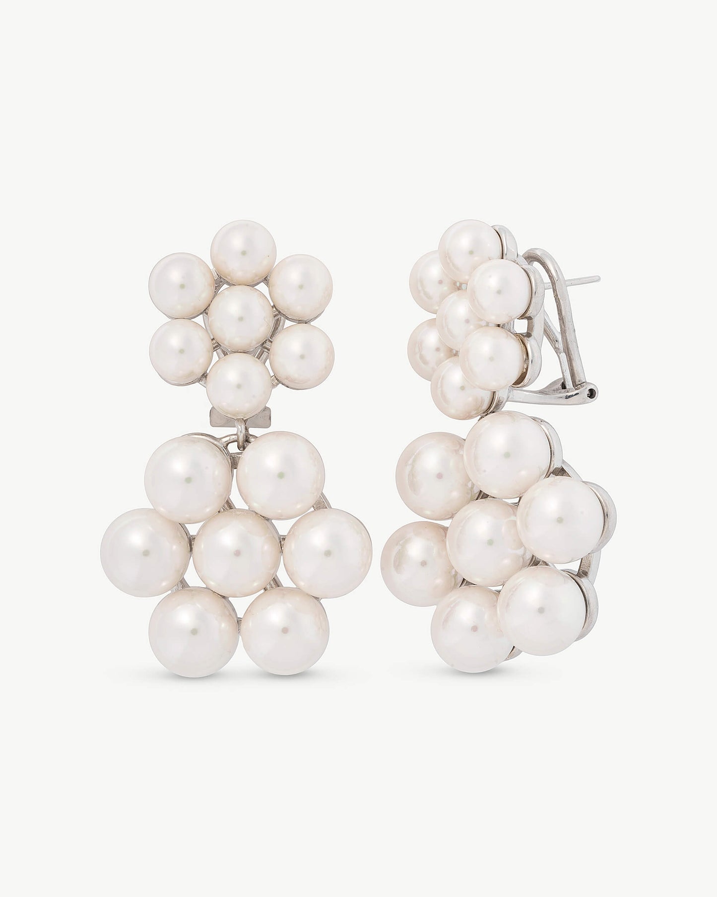 Rhodium-plated silver spike earrings with 6 and 8 mm round white pearl.