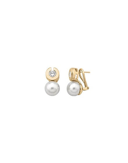 Pearl and Zirconia Earrings 10mm Golden Exquisite