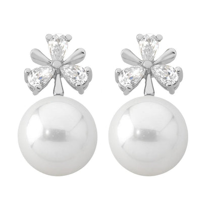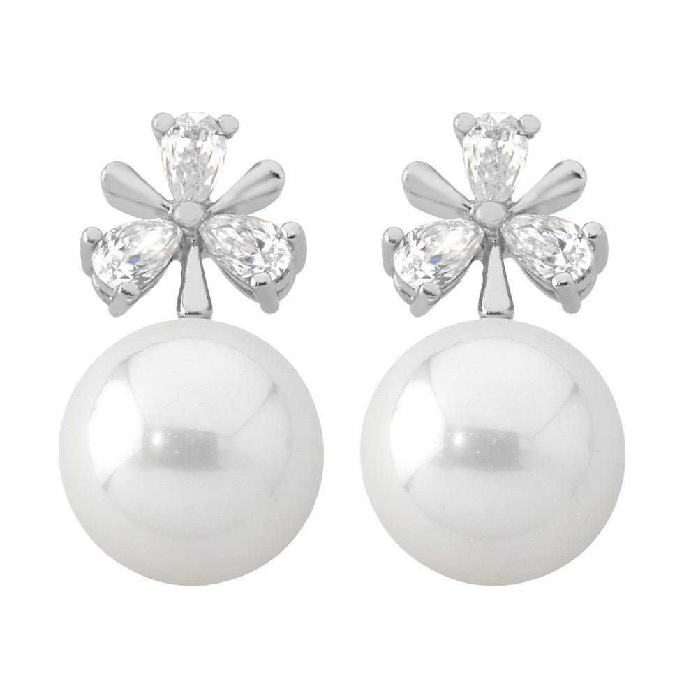 Short spike earrings in rhodium-plated silver, 10mm white round pearls and zircons. The combination of pearls and zircons in the collection is suitable for romantic styles that seek simplicity, although always with the elegance and perfection of the brilliance that the set Zircons give to each of these jewels.