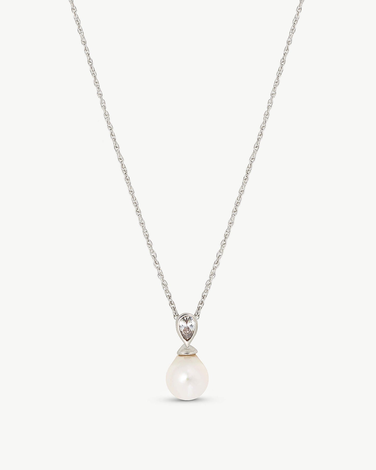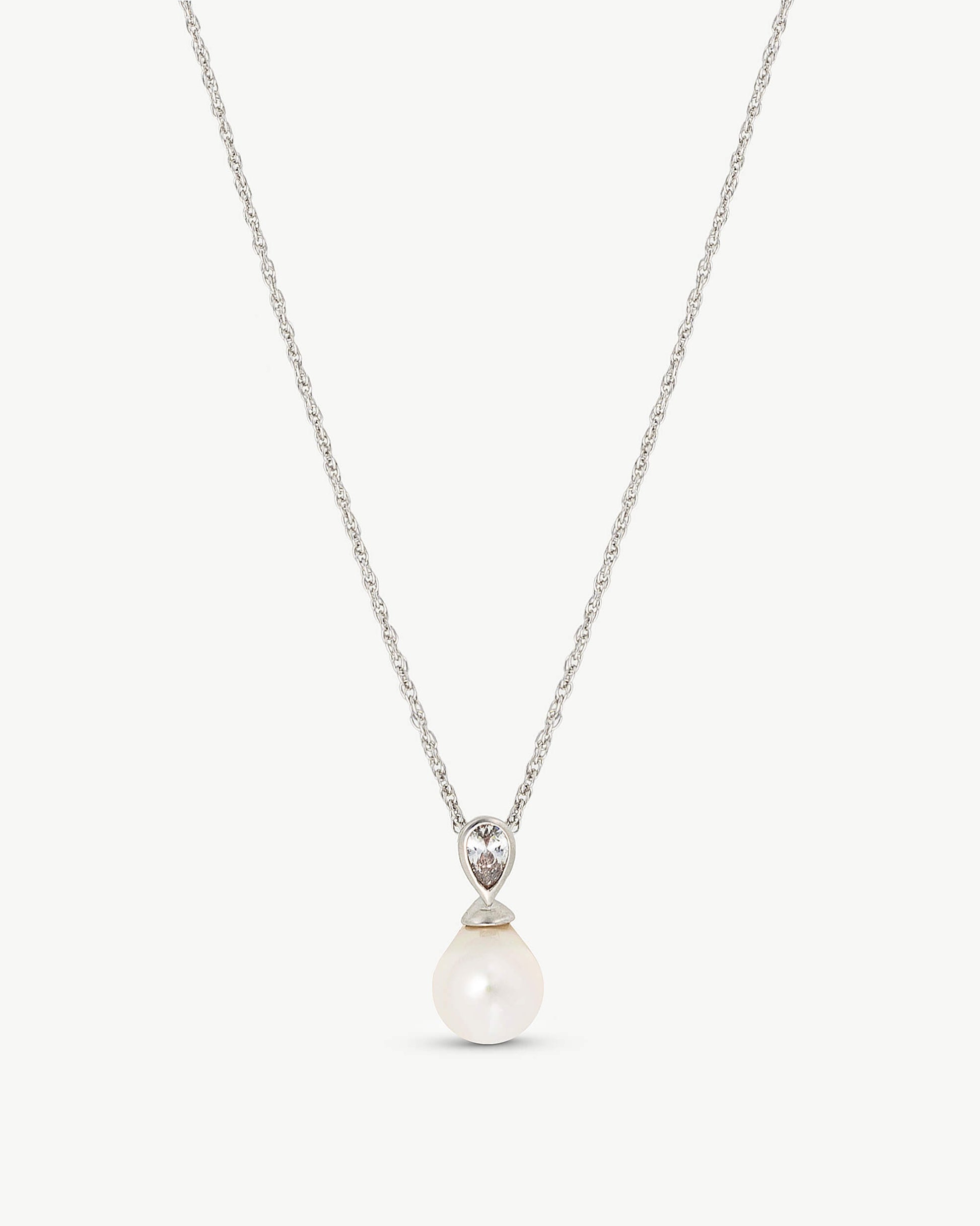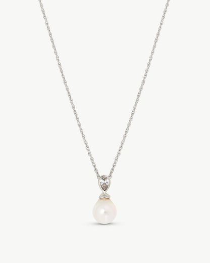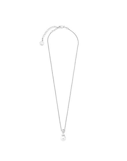 Pendant with 48cm chain in rhodium-plated silver, 10x12mm white pear pearl and zirconia. Jewelry for your daily life.