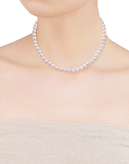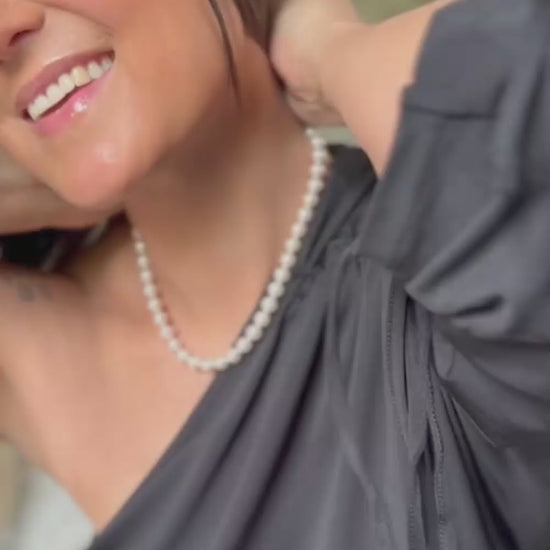Short 50cm necklace in rhodium-plated silver, 8mm white round pearls. If you are looking for a selection of basic jewelry for your jewelry box: these earrings from the collection are a "must" that combines with all looks and moments.