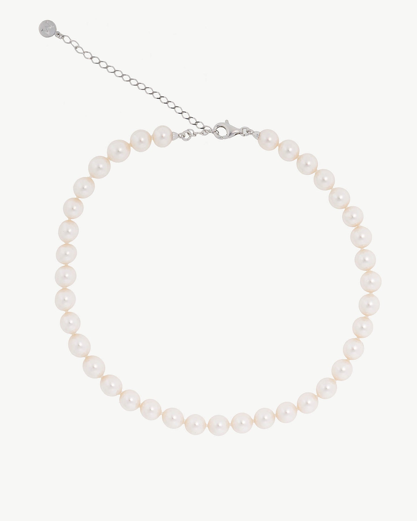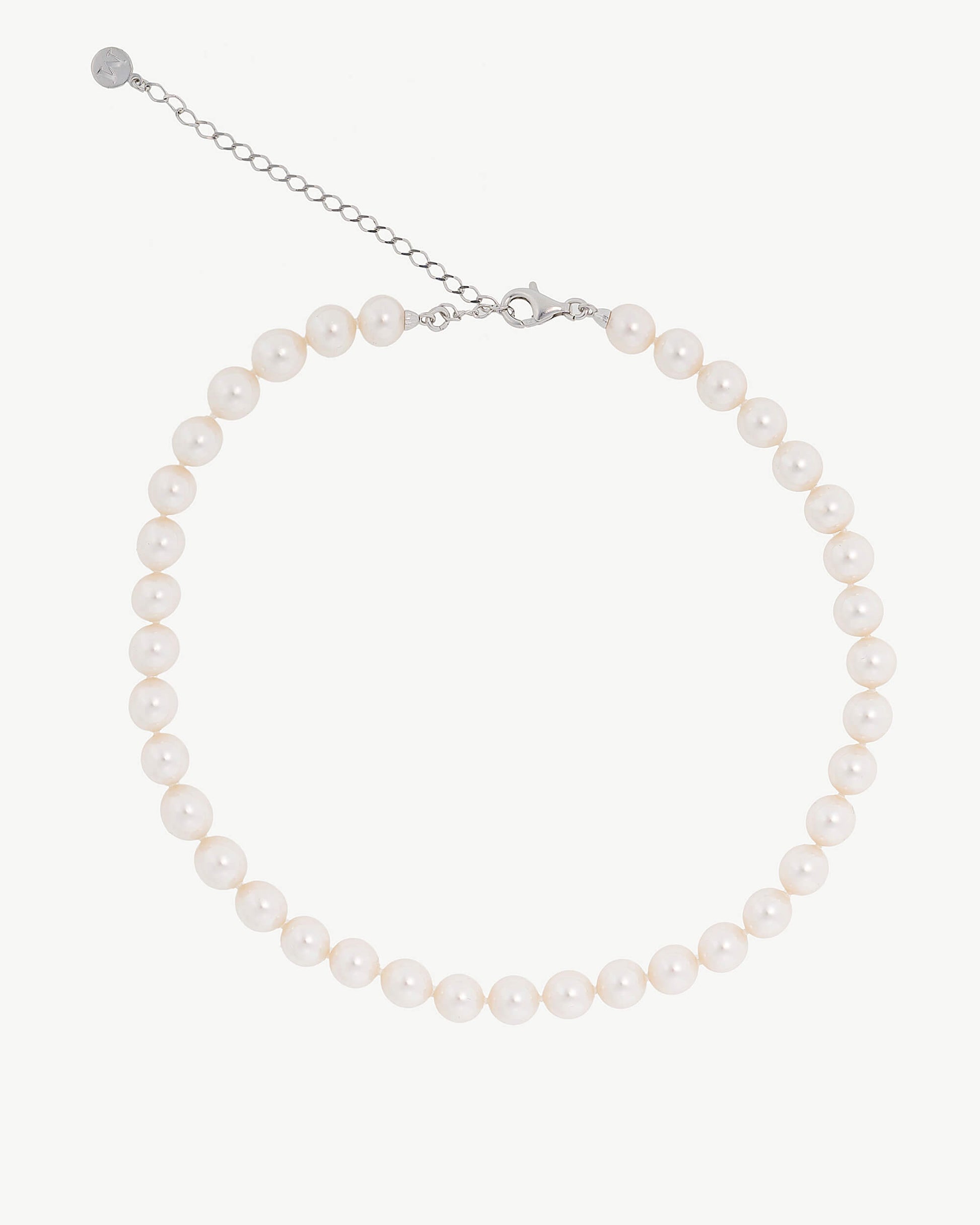 Short 32/40cm necklace in rhodium-plated silver, 8mm white round pearl. The magic and elegance of classical ballet is reinvented in this collection of timeless classics.