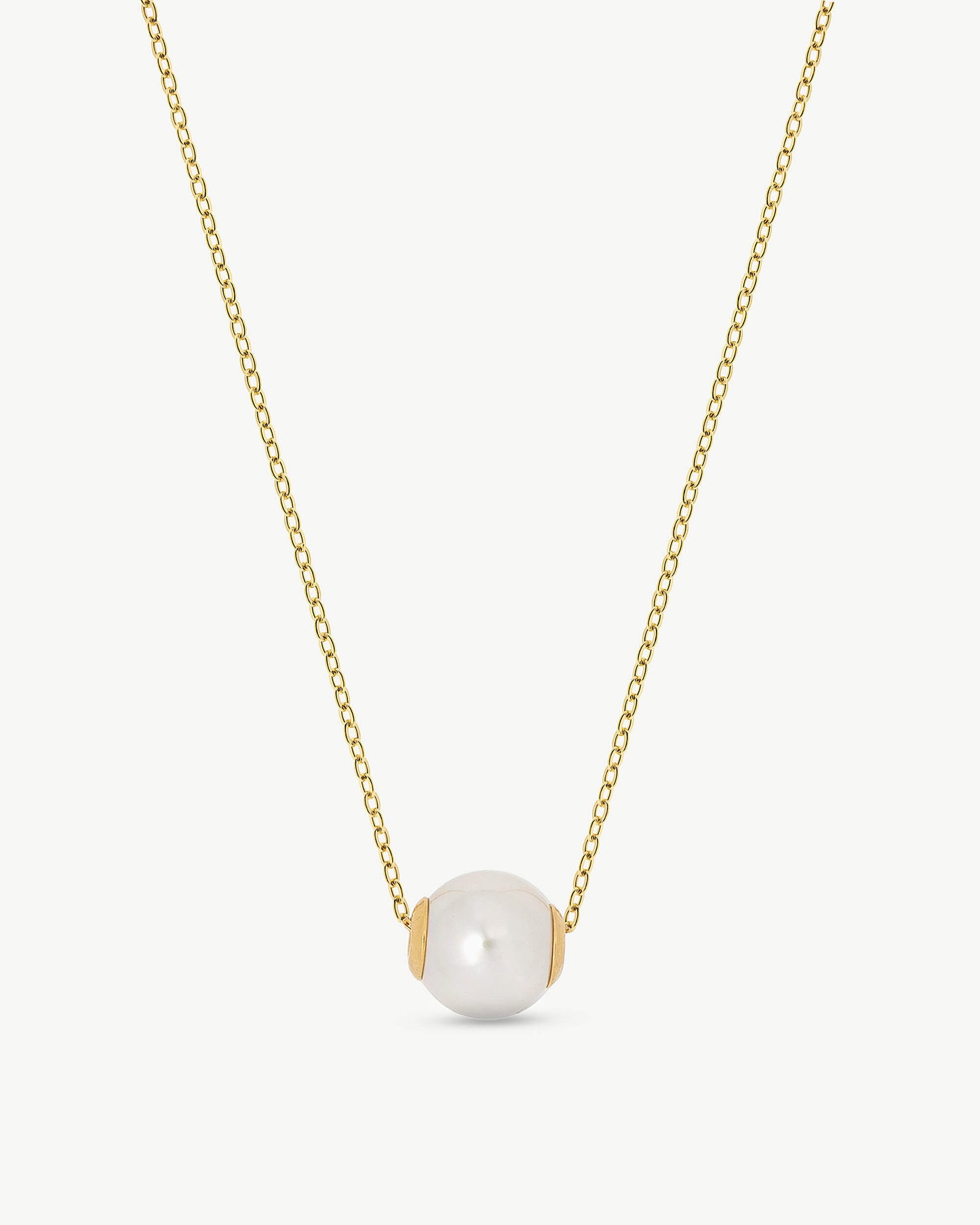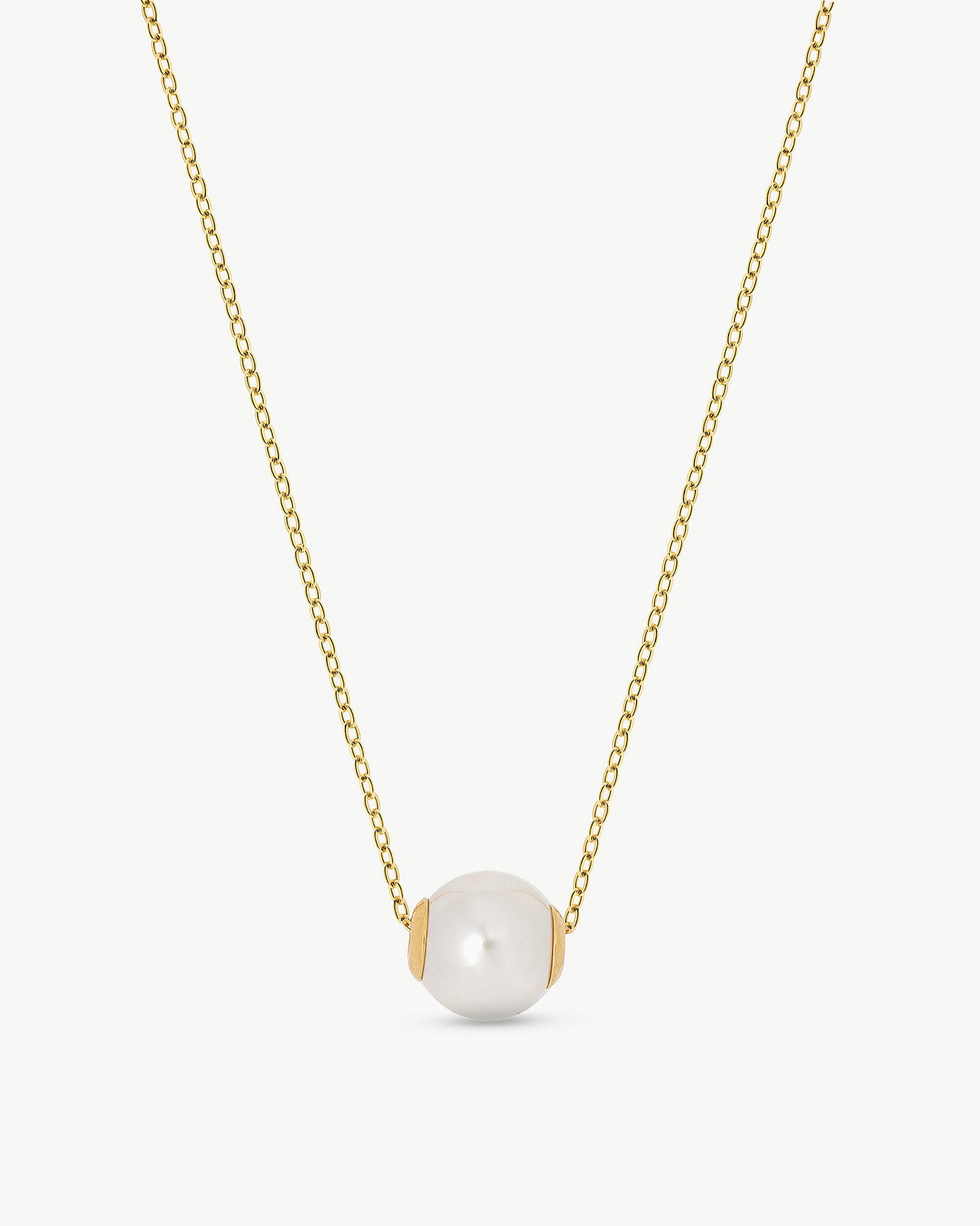 33/39cm choker in 18k gold-plated silver, with a 12mm white round pearl.