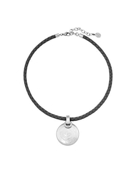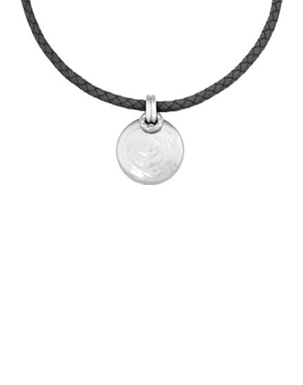 38/43cm black leather choker in steel, 30mm white flat pearl.
