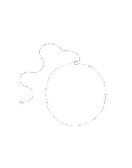 Extension of thin silver chain braided with round pearls, to incorporate into your necklace or choker. Chain length 30cm.