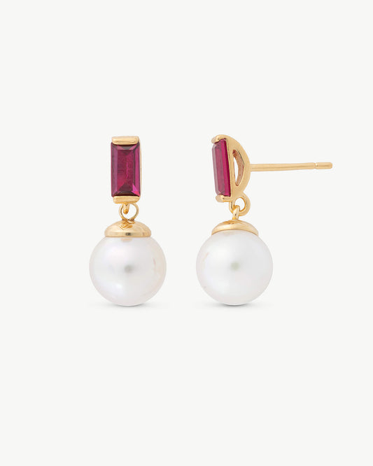 Double Pearl Earrings Red and Nuage 10–12mm Twins & Triplets