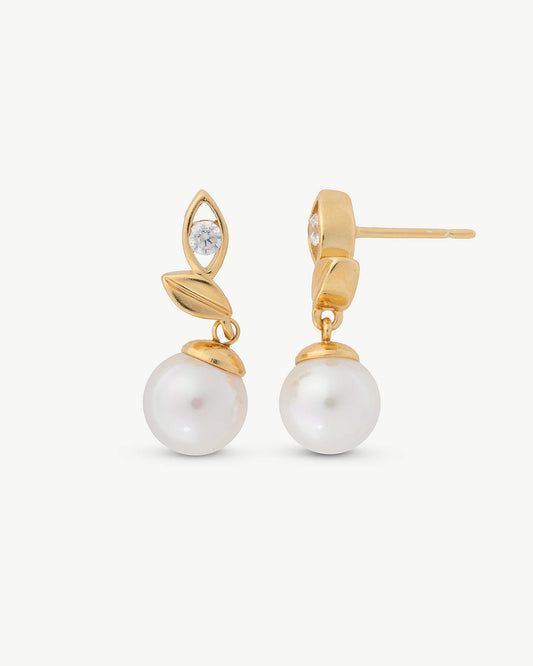 Leaf and Pearl Earrings 6mm Romea