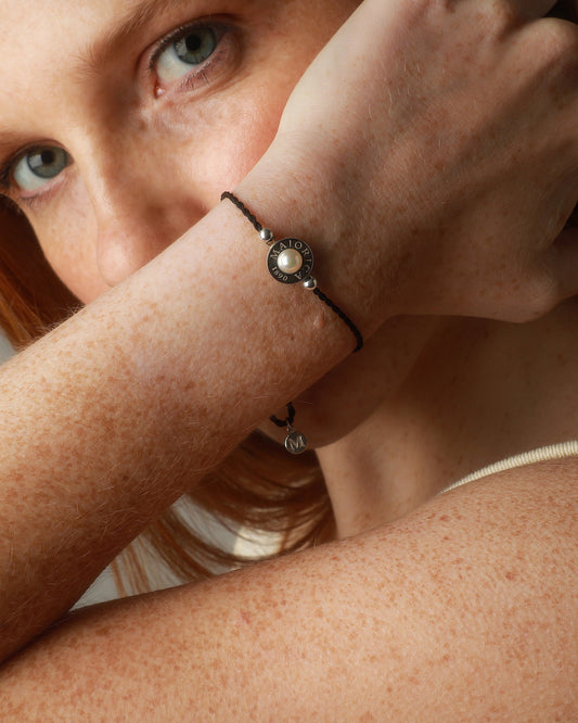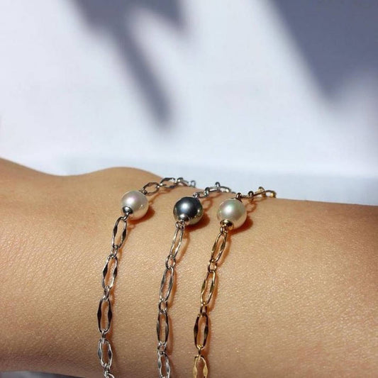 Slave Bracelet with Oval Plate and Pearl 5mm Little M