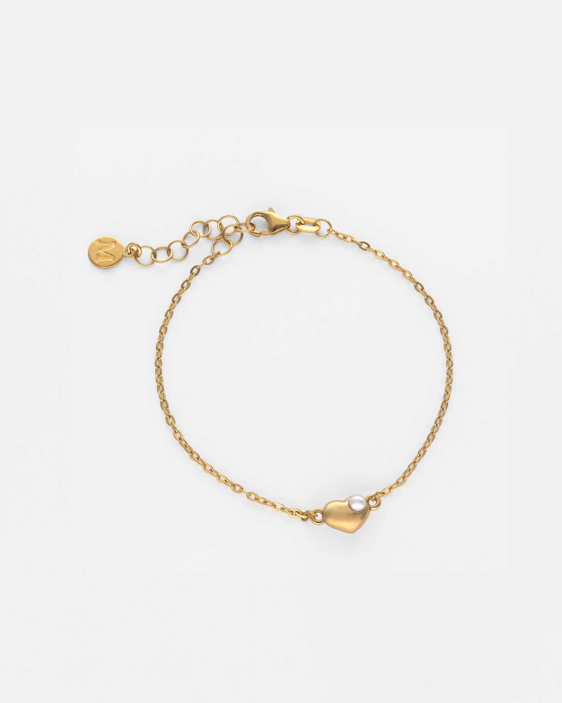 Chain bracelet with heart made of silver plated in 18K gold. The heart has an embedded white pearl.