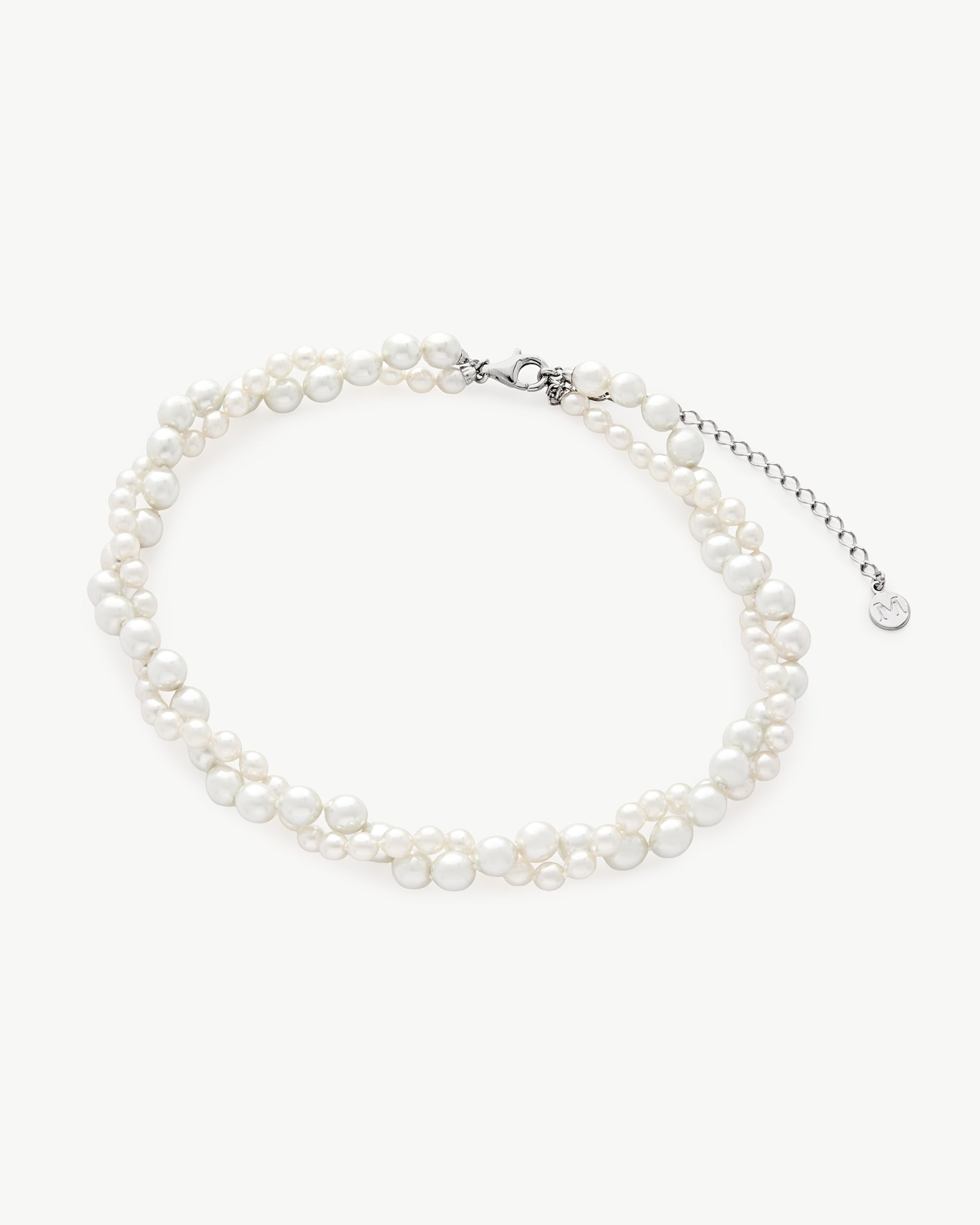 32cm long two-way pearl choker. Elegant and versatile design that adapts to different styles and occasions. Created with 4 and 6mm white round pearls, hand-strung and knotted.