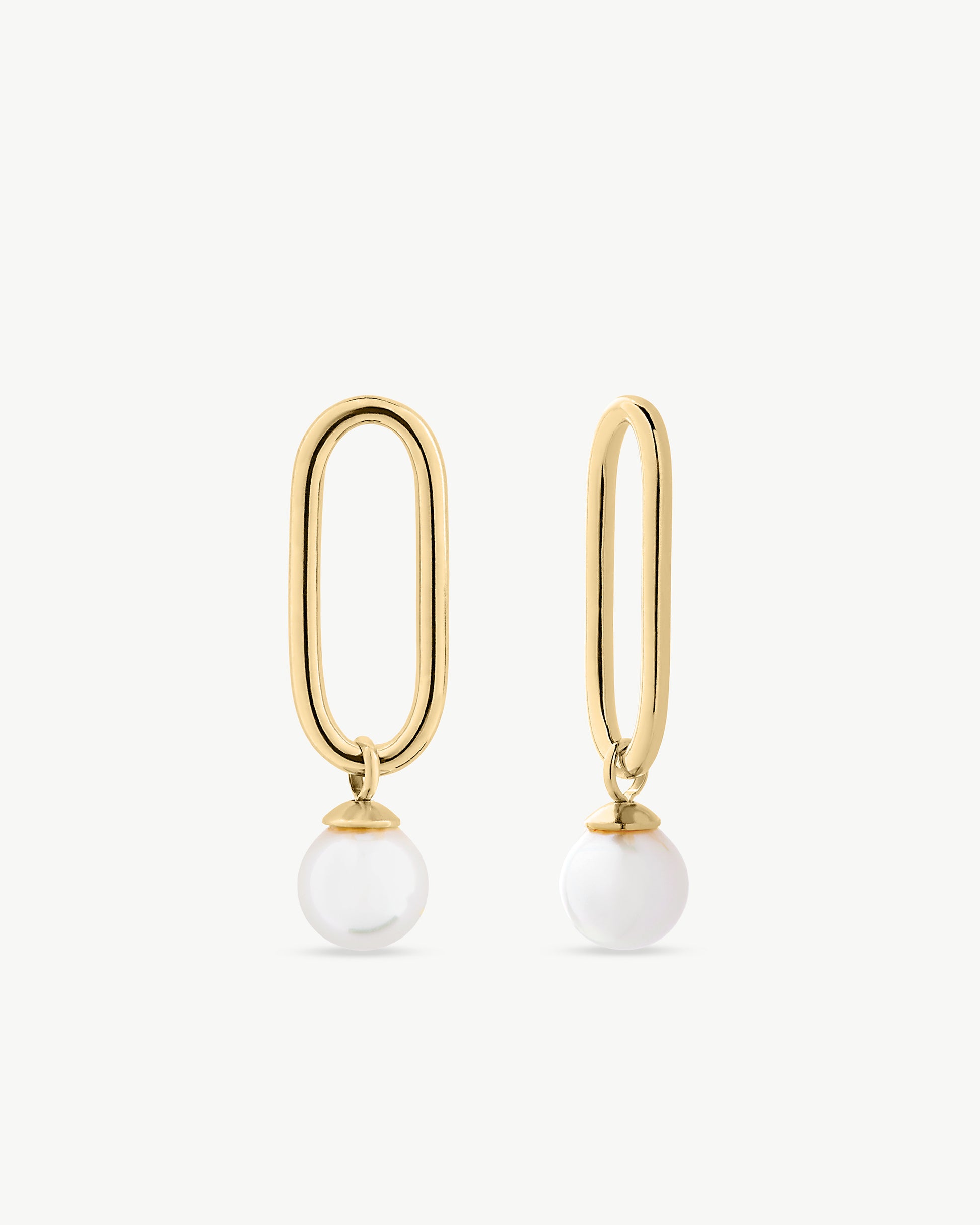 2.5cm long link chain earrings in 18k gold-plated sterling silver. The Links earrings feature a 6mm round white handcrafted pearl design and a push-button closure.