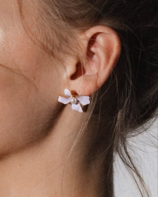Pearl Earrings 5mm White Flowers