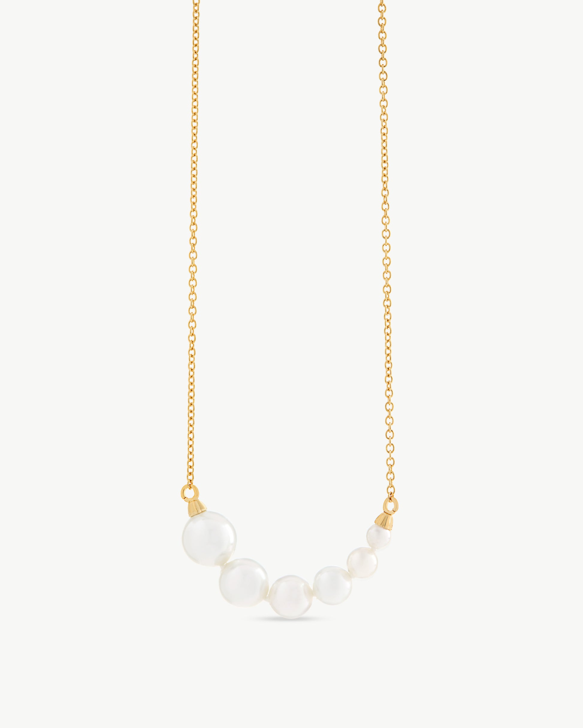 Adjustable necklace up to 45cm long with a gold-plated silver chain. It features a centered gradient of round white artisan pearls measuring 4, 5, 6, 7, 8, and 9mm.