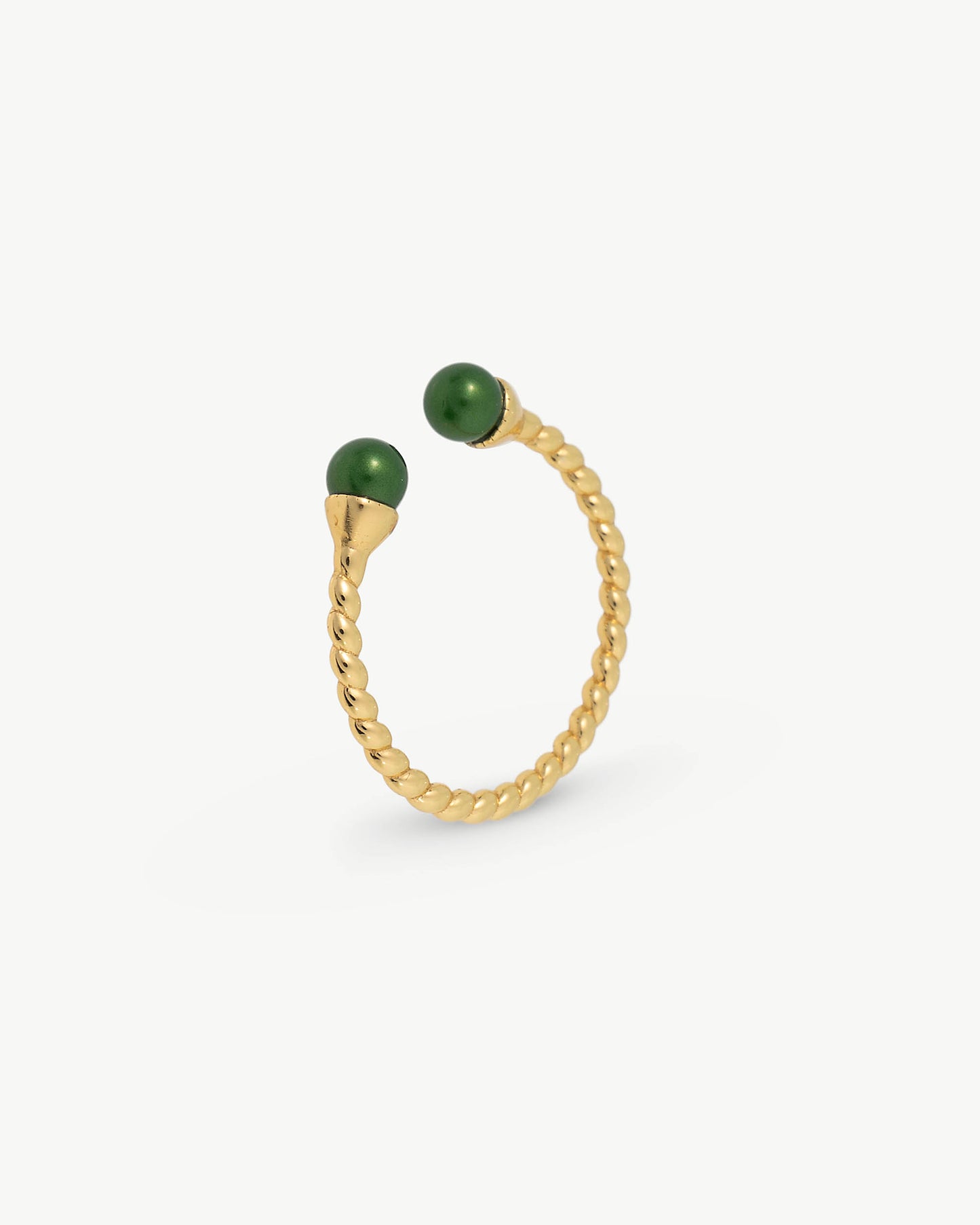 Adjustable ring in 18k gold-plated silver with 4mm round green pearls.
