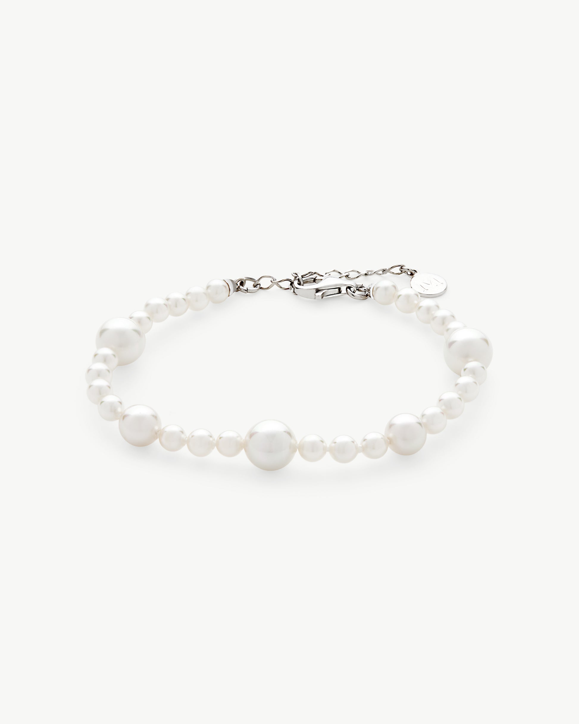 17cm long pearl bracelet. The design features 4, 6, and 8mm white round pearls strung and knotted by hand.