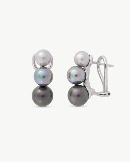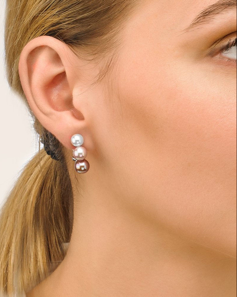 Short spiked omega earrings in rhodium-plated silver, 7/8mm multicolor round pearls. The classics that never go out of style.